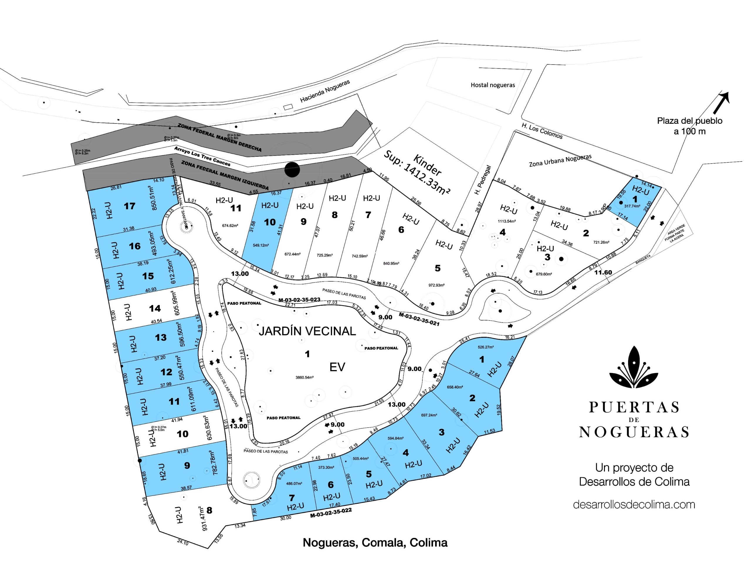 Puertas de Nogueras se desarrolla en un entorno muy particular, dentro de la comunidad de Nogueras, Comala (Colima). Su clima es más fresco que en la ciudad de Colima y su zona conurbada. El ambiente es de calma y tranquilidad. Se encuentra contiguo al pueblo mágico de Comala.